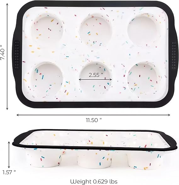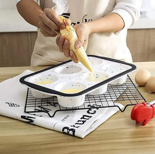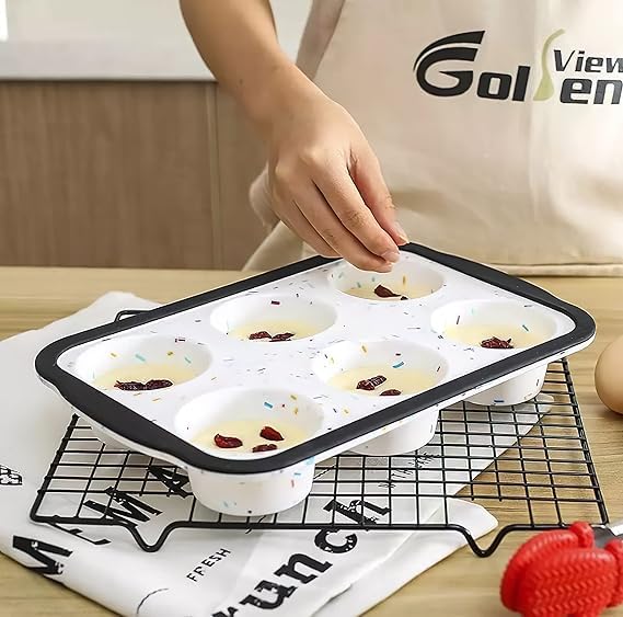Generic - قالب سيليكون حراري للكب كيك والدونات 6 عين بقاعدة حديد مقاومة للانحناء مع ورق هدية لتحضير الحلويات بكل سهولة في البيت | من عام