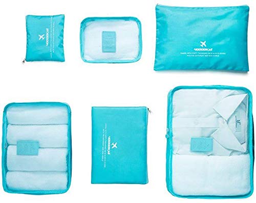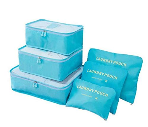 Other - مجموعة شنط تخزين للسفر مقاومة للماء للملابس مكونة من 6 قطع البوليستر ازرق اذر