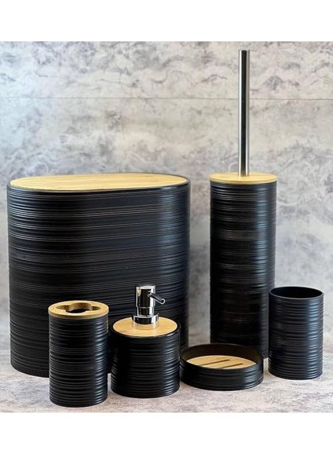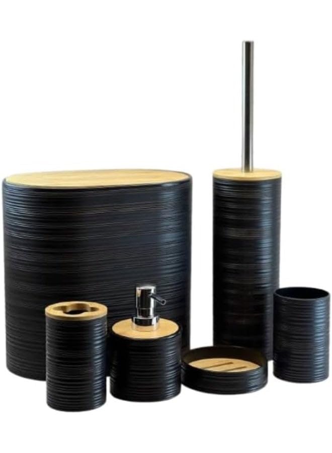 generic - طقم اكسسوارات حمام بيضاوي مكون من 6 قطع بتصميم عصري واغطية خشبية لتنظيم وتجميل الحمام (اسود)