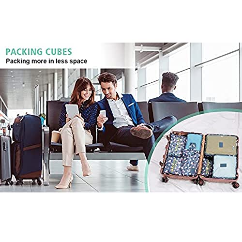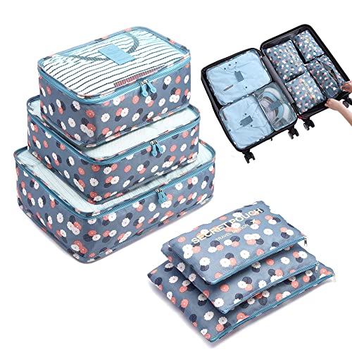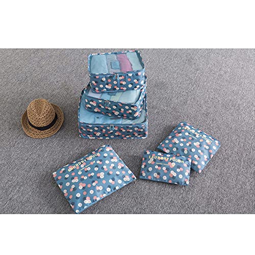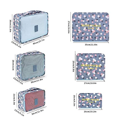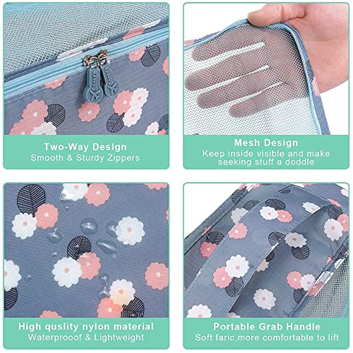 SSyang - مجموعة منظم شنط السفر من 6 قطع، شنط تعبئة لتنظيم شنط السفر بتصميم مكعب مقاومة للماء، للملابس والاحذية والملابس الداخلية ومستحضرات التجميل (نقشة زهور لون ازرق)، قماش أكسفورد، من اس اس يانج