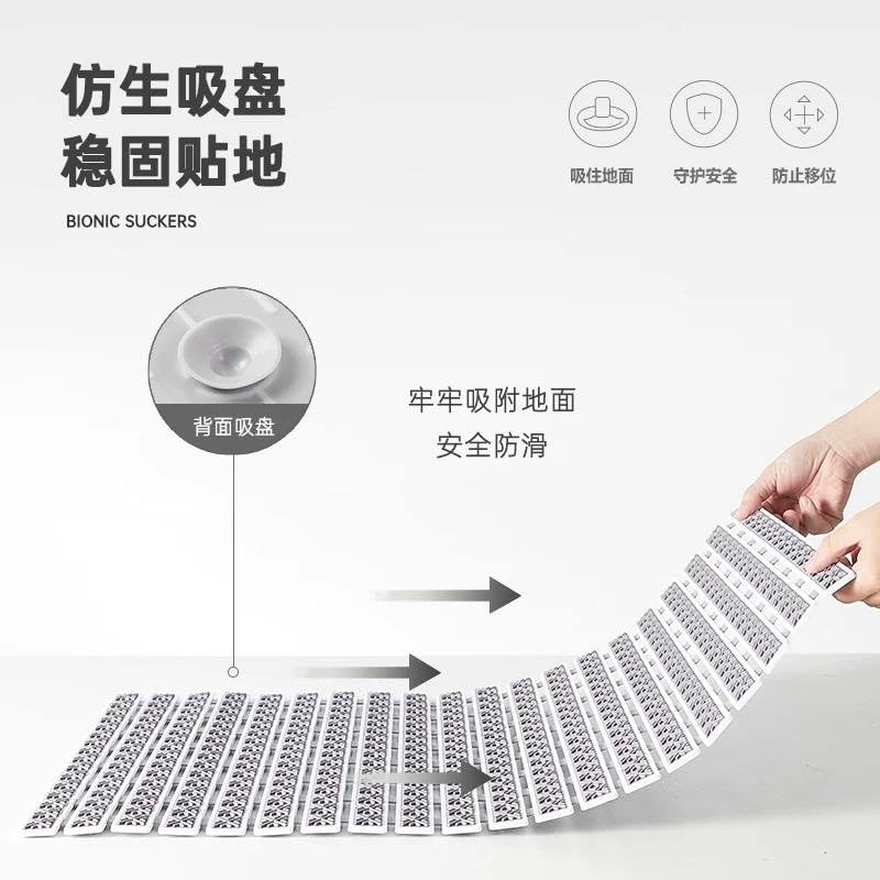- تصميم قابل للطي: سجادة حمام مبتكرة بتصميم شرائح متشابكة يمكن طيها وتخزينها بسهولة، مقاس 60×40 سم مناسب لمعظم أحواض الاستحمام والأرضيات