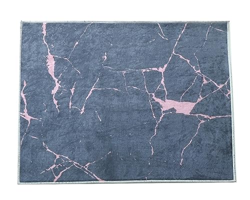 Generic - سجادة مستطيله شكل 60X50 سم - رمادي غامق روز، مزيج القطن