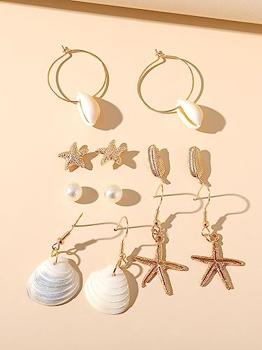 Generic - مجموعة من 6 ازواج من اقراط زينة صدفة ن