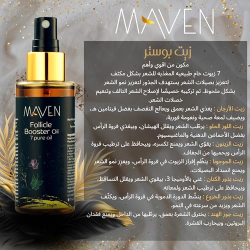 MAVEN - زيت بوستر من ميفين مكون من اقوي واهم 7 زيوت خام طبيعية مغذه للشعر بشكل مكثف، 75 جرام