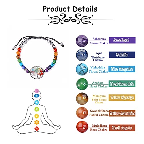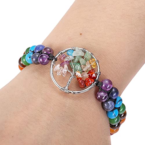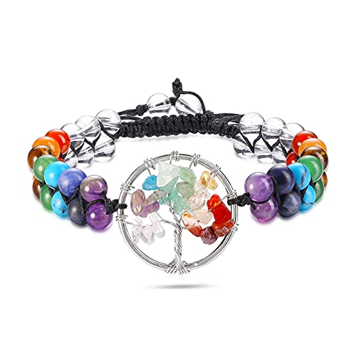 generic - سوار من احجار الشاكرا السبعة العلاجية الكريستالية على شكل شجرة الحياة للنساء، احجار كريمة طبيعية ريكي للتخلص من القلق وخرز الشاكرا واليوجا والتامل، مجوهرات للرجال، هدايا عيد الام