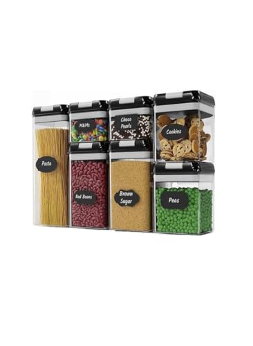 generic - 7 قطع من حاويات تخزين وتنظيم الطعام للمطبخ شفافة محكمة الغلق - صندوق بلاستيكي مع غطاء ومنظم ملاعق خالٍ من البيسفينول أ