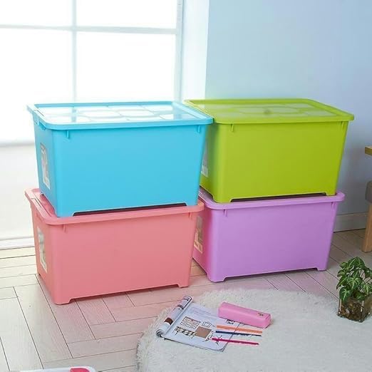 Generic - صناديق تخزين بلاستيكية بسعة كبيرة 72 لتر مع غطاء، حاوية عجلات، صندوق من البولي بروبيلين - الوان متنوعة