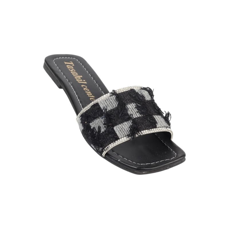 Generic - سليبر حريمى فلات جلد فى قماش 796 اسود 37