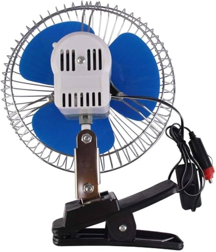 • مروحة 8 بوصه 3 ريشة زرار تشغيل على ولاعة السيارة 12 فولت بالمشبك مروحة سيارة قابلة للدوران: سيتمكن كل شخص في شاحنتك الصغيرة أو سيارتك من الجلوس براحة مع نفخ الهواء البارد في جميع الاتجاهات