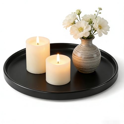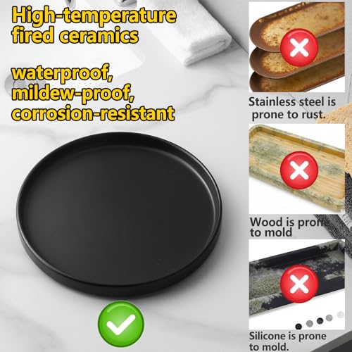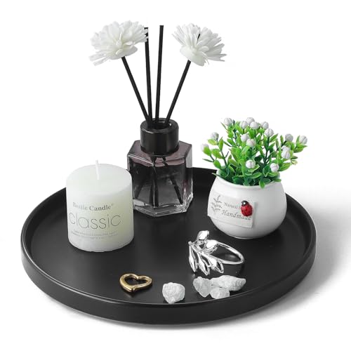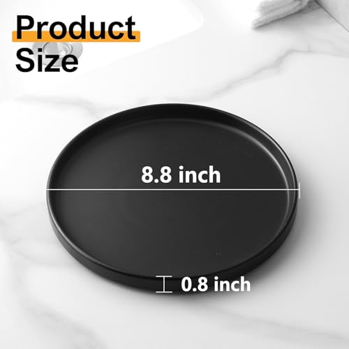 BSDISP - صينية دائرية من السيراميك بلون أسود مقاس 22.35 سم - صواني زينة لطاولة الحمام، صينية صابون لطاولة المطبخ، ديكور طاولة القهوة، الشموع، العطور، النباتات.