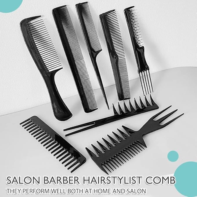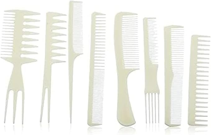 - مجموعة كاملة من 8 قطع - تتضمن مجموعة متنوعة من الأمشاط: أسنان عريضة، أسنان دقيقة، مشط ذيل، مشط مجرفة، مشط تصفيف، مشط قص الحلاقة، وأكثر من ذلك لجميع احتياجات الشعر.