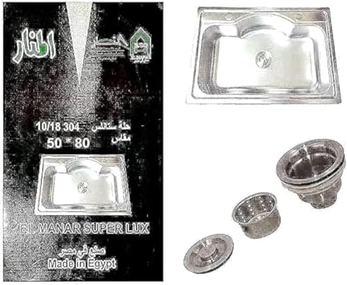 Generic - حلة حوض مطبخ من الفولاذ المقاوم للصدأ مقاسات 80 سم / 50 سم / شركة المنار