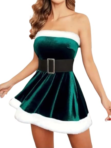 هنادي - قميص نوم تنكري كريسماس قطيفة مع فرو باطلالة احتفالية جذابة – وان سايز حتى 80 كيلو – HN 9093