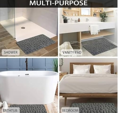 Generic - سجادة حمام فوم بلون رمادي مقاس 80 × 50 سم، فائقة الامتصاص، لشفط الماء وقابلة للغسل في الغسالة، سريعة الجفاف، النعومة، المايكروفايبر، دواسة باب، رغوة الذاكرة. عرض أقل