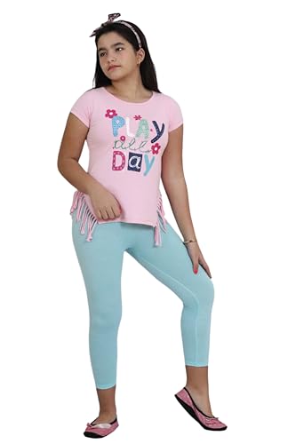 Choice N.C - بيجاما بناتي بطباعة play تيشيرت نص كم وبنطلون خامة ليكرا قطن ناعمة مريحة بتصميم عصري مناسبة للنوم والبيت code 884