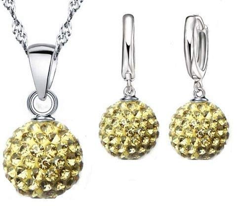 Other - طقم إكسسوار ( أقراط و سلسلة بدلاية ) مطلي فضة 925 ومزينة بالكرستال، فضي، للنساء