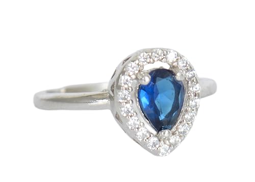 Generic - خاتم من الفضة الإسترليني 925، حجر أزرق على شكل قطرة محاط بأحجار لامعة، وزن 2.62 جرام، مقاس 16