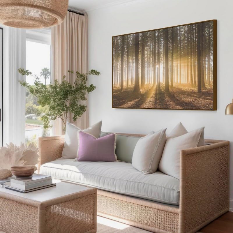 Home Gallery - تابلوه فن للحائط من القماش بتصميم غابة مع الشمس الساطعة عبر الغيوم، أبعاد 1.20 متر × 80 سم