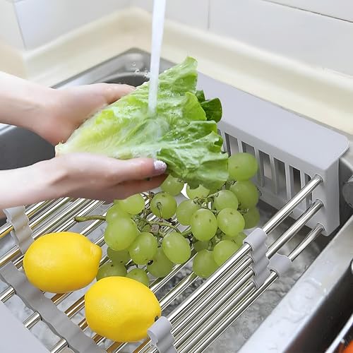 Generic - سلة مطبخ لفلتر المياه مصنوعة من الستانلس ستيل، شبكة دقيقة لتجفيف الاطباق وغسل الخضروات والفواكه بتصميم عملي وقابل للتوسيع
