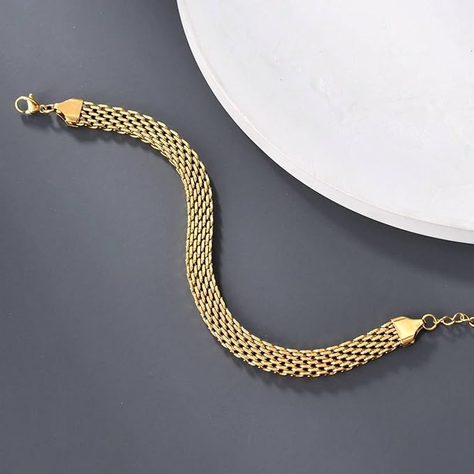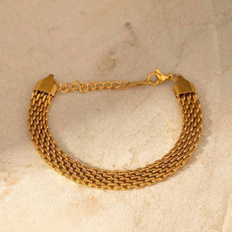 Generic - سوار مجوهرات للنساء مصنوع من الستانلس ستيل المطلي بالذهب بلون ذهبي وتصميم عصري.