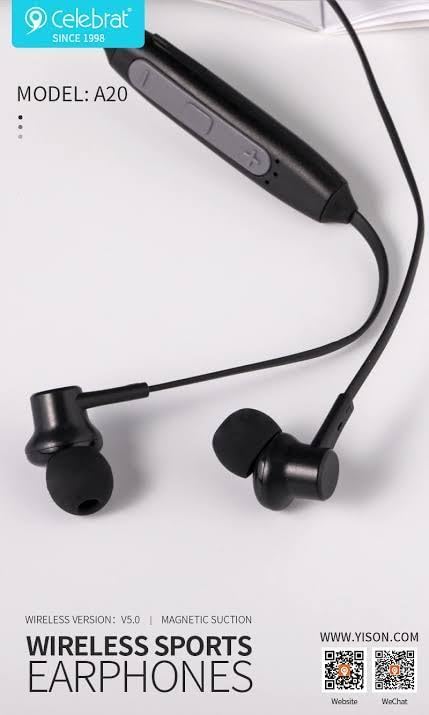 Generic - سماعة أذن لاسلكية للصوت، للموسيقى والمكالمات، تصميم حول الرقبة وبشكل رياضي (لون أسود) موديل A20