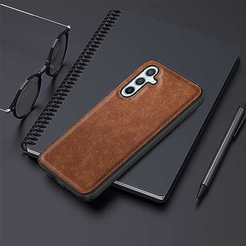 Generic - جراب حماية متوافق مع موبايل سامسونج جالاكسي A34 شبكة الجيل الخامس 5G من الجلد الفاخر بتصميم رفيع وانيق وناعم مضاد للصدمات والخدوش 6.4 بوصة بني