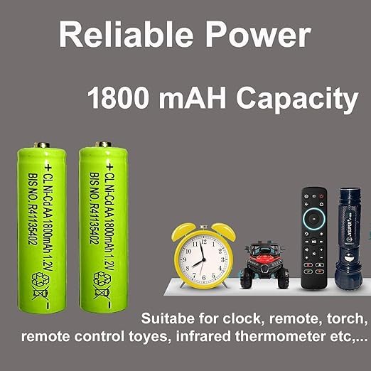 - بطارية نيكل ميتال هايدريد 1800 ميلي أمبير في الساعة هي خيار يمكن الاعتماد عليه لتشغيل الأجهزة اليومية بكفاءة وطول العمر.