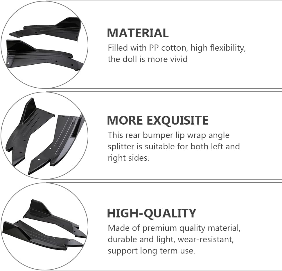- تصميم متوافق عالميًا: رفارف واقية لزاوية الإكصدام الخلفي للسيارة بملاءمة عالمية وموزع جانبي للخدش بلون أسود فحمي لامع.