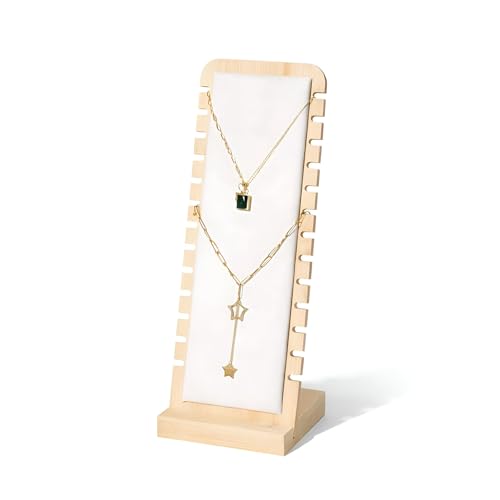 Generic - منظم اكسسوارات - حل تخزين كامل مع مساحات تخزين من طبقتين من الجلد الصناعي وحامل خواتم خشبي، مصمم لمجموعة المجوهرات النسائية. (حامل سلسلة)