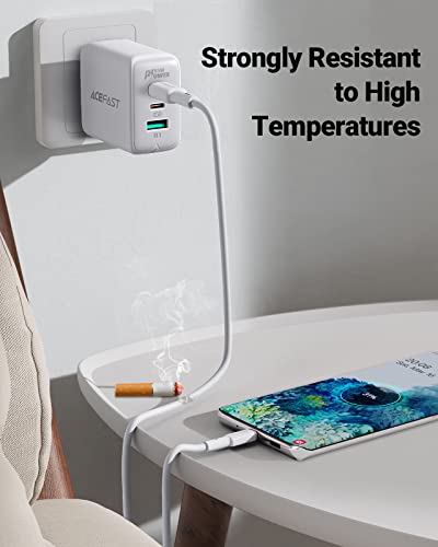 ACEFAST - كابل شحن ونقل بيانات USB نوع سي الى خليط معدني من الزنك مغلف بالسيليكون ايس فاست لون ابيض C2-03 الهواتف المحمولة سامسونج هواوي شاومي اوبو