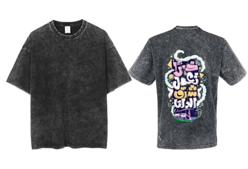Generic - تي شيرت شبابي كبير الحجم بلون رمادي من اسيد ووش مقاس اكبر من النص للعمل والعمل 87 خيرا تعمل شرق الدلتا