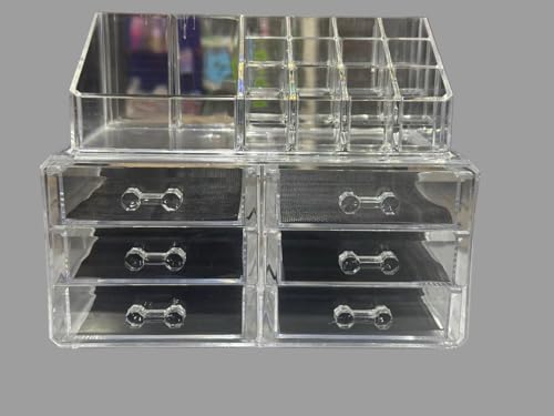 Generic - منظم مكياج اكريليك لمستحضرات التجميل - حافظة شفافة لعرض فرش احمر الشفاه ومستحضرات التجميل بـ 16 فتحة و6 ادراج