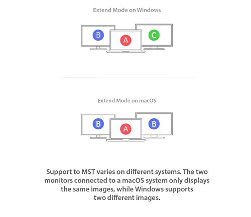 - يمكن استخدام ام اس تي (تدفق متعدد) في نفس الوقت على شاشتين مع HDMI (WIN A->B&C؛ macOS A->B&B)