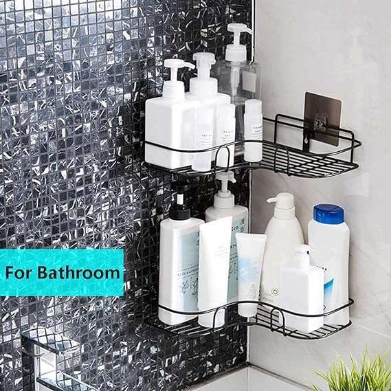 Generic - رف زاوية معدني لاصق، للمطبخ والحمام - 2 قطعة، اسود