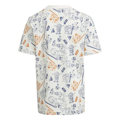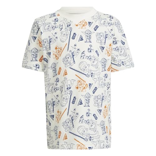 adidas - تيشرت قطن للأولاد والبنات من أديداس بأكمام قصيرة وتصميم مزين بلوجو العلامة بنمط 3 خطوط