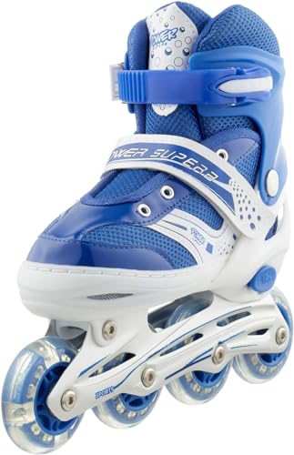 • نظام رباط لعجلات التزلج دوار سهل الاستخدام ومريح للطفل. مصمم ليسهل على الأطفال ارتداء أحذية التزلج الخاصة بهم وخلعها. يتمثل الشيء الرائع في أن الأشرطة تتحمل حتى بعد سنوات من الاستخدام الشاق. عجلات أحذية التزلج ناعمة وسلسة، ما يجعل من السهل على الأطفال الصغار التعلم كيفية التزلج. يأتي الحذاء بمساحة كبيرة في حذاء التزلج، ما يوفر مساحة للأقدام المتنامية. نشاط ممتع يمكن أن يستمتع به العديد من الأطفال، ويعتبر طريقة رائعة لمساعدتهم على تحسين توازنهم وتنسيقهم. تم تصميم هذا الحذاء بعجلات