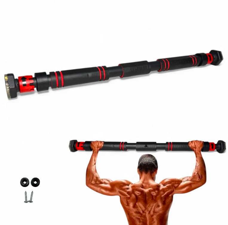 Generic - قضيب سحب قابل للتعديل للمدخل، 60 الى 100 سم، اسود واحمر، سهل التركيب بدون أدوات، نظام امان مزدوج
