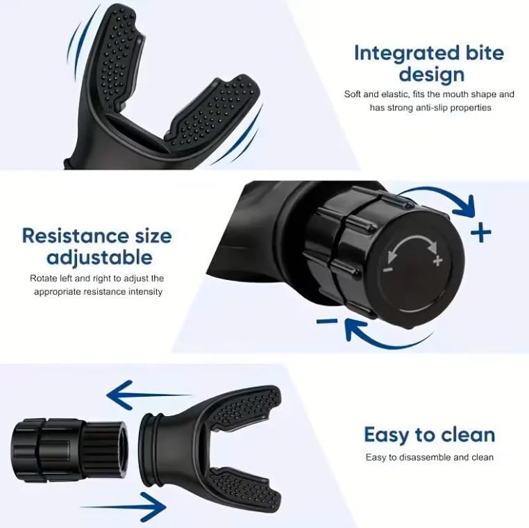- تصميم مريح للعضة: قطعة فم مدمجة ناعمة ومرنة تتناسب بشكل مريح مع شكل فمك مع سطح محكم مضاد للانزلاق لقبضة آمنة أثناء تمارين التنفس