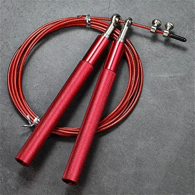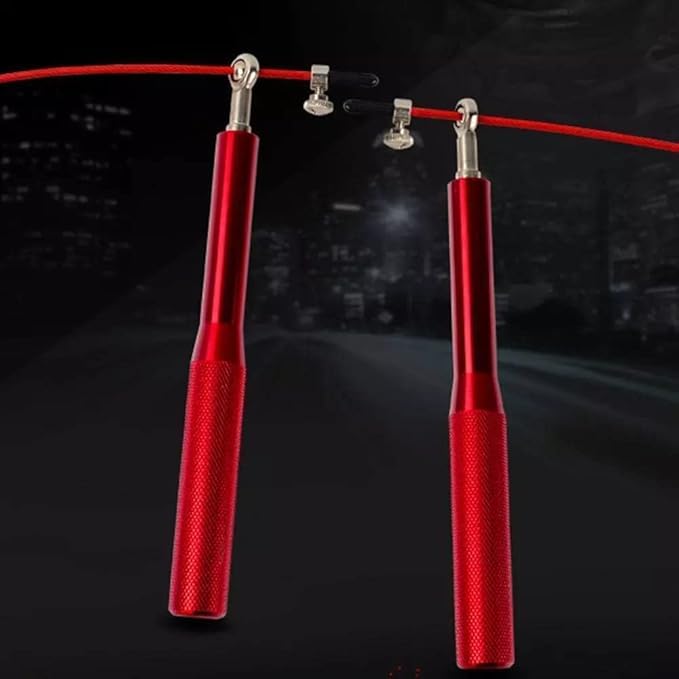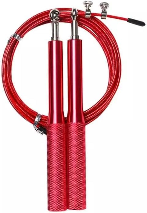 Generic - حبل قفز سريع قابل للتعديل مع كابل صلب، مقابض من الألومنيوم، أحمر