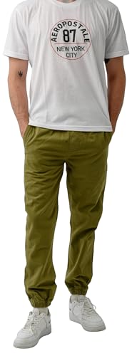 Aeropostale - بنطلون جينز كلاسيك سادة بخصر بأستك للرجال من ايروبوستال، 98% قطن، 2% سباندكس
