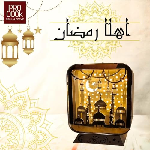 ProCook - فانوس رمضان من الستانلس ستيل بلون فضي مع إضاءة دافئة من أهلا رمضان