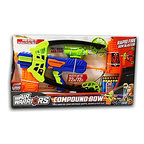 Air Warriors - لعبة كومباوند من بز بي تويز، مصنوعة من البلاستيك، مناسبة للجنسين من عمر 6 سنوات. تتميز بقوس قابل للتمدد ونظام كليب قلاب وإطلاق سهم مستمر. تساعد في تنمية التناسق بين اليد والعين.