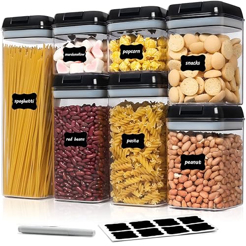 Generic - مجموعة تخزين الطعام محكمة الغلق - تتضمن 7 حاويات بلاستيكية شفافة خالية من BPA تتراوح من 0.5 لتر إلى 1.9 لتر، مصممة للنضارة مع ملصقات قابلة لإعادة الاستخدام للحفاظ على مخزن المؤن منظمًا بشكل أنيق.
