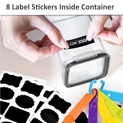 - تسمح لك الملصقات الثمانية القابلة لإعادة الاستخدام وقلم التحديد بتحديد المحتويات بوضوح وتحديثها بسهولة - مثالية للتمييز بين العناصر المشابهة مثل الدقيق والسكر البودرة - مما يضمن بقاء نظام التخزين الخاص بك دقيقًا وقابل للتكيف بمرور الوقت.