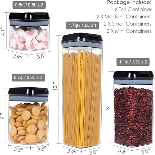 - تتضمن هذه المجموعة المكونة من 7 قطع حاويات ذات حجم دقيق تتراوح من 0.5 لتر إلى 1.7 لتر، مصممة لتخزين مجموعة متنوعة من السلع الجافة مثل الدقيق والأرز والسكر والحبوب والمكسرات والقهوة، مما يضمن أن كل منتج له منزل مثالي ويزيل الفوضى في خزانة المؤن.