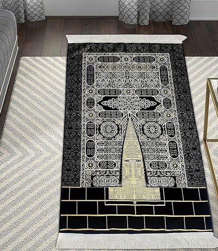 Spaceshoop - سجاد صلاة من قماش الشنيل، H102، اسود، 125*68 سم