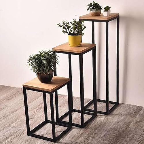 OPEX - مجموعة من 3 قطع من التميز المعدني 30، 25، 20 سم - أسود وبيج، خشب معدن