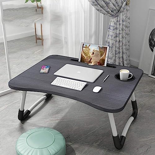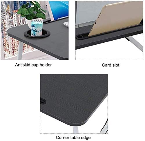 ALA - ترابيزة لاب توب محمولة قابلة للطي بمسند للنوت بوك وحامل ايباد وفتحة للكوب للاستخدام في الاماكن الخارجية والداخلية والتخييم والدراسة والاكل والقراءة ومشاهدة الافلام على الكنبة والارض (اسود)