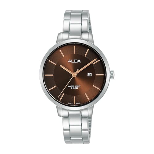 Alba - ساعة بحركة كوارتز وعرض أنالوج وسوار من الفولاذ المقاوم للصدأ للنساء من البا، فضي، موديل AH7AF7X