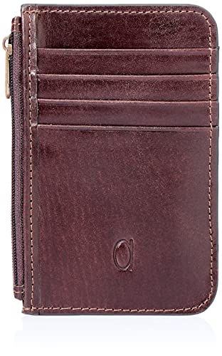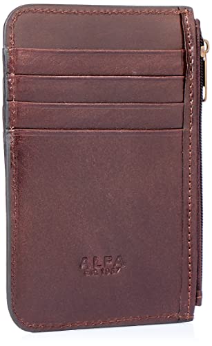 Alfa Leather Co. - محفظة من ألفا ليذر مصنوعة من الجلد للجنسين، بتصميم كلاسيكي باللون البني، مع فتحات متعددة للبطاقات وجيب بسحاب